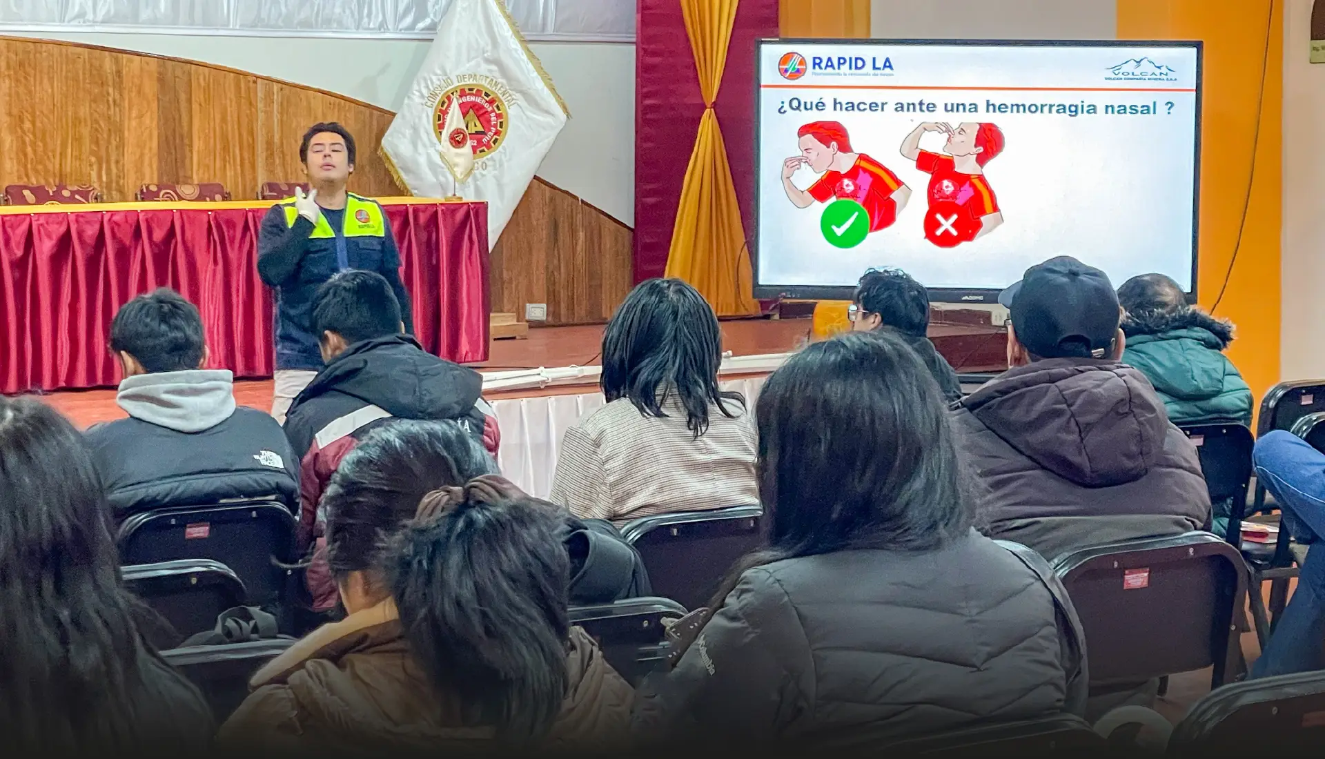 Durante la capacitación, el equipo técnico de RAPID LA compartió sus conocimientos y experiencias en gestión de emergencias, primeros auxilios y seguridad comunitaria, reforzando las capacidades locales para actuar de manera efectiva ante incidentes.